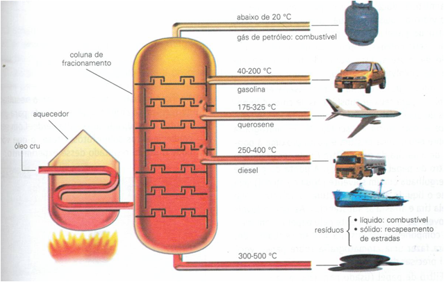 A figura abaixo ilustra o processo de separação dos componentes do petróleo.